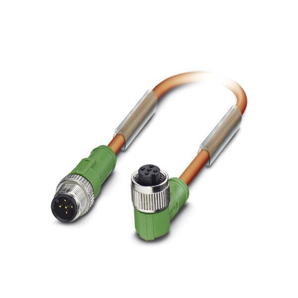 Sensor/Actuator cable 5-position PUR orange RAL 2003 Plug straight M12 A-coded on Socket angled M12 A-coded Cable length: 1 m Customer-specific version