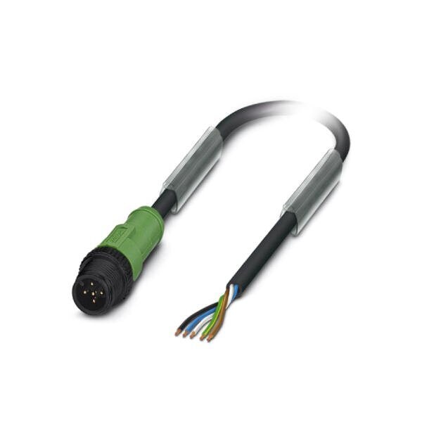 Sensor/actuator cable 5-position PUR halogen-free black-gray RAL 7021 Plug straight M12 coding: A on free cable end cable length: 1.5 m with plastic knurl