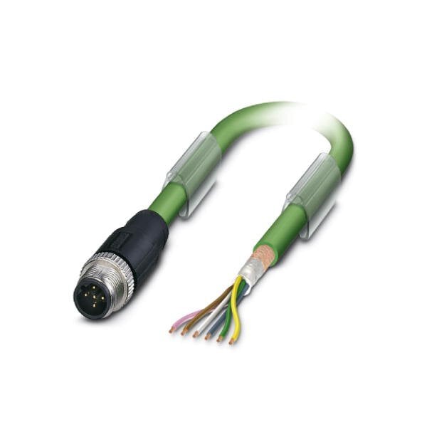 Bus system cable INTERBUS 16 Mbps 5-position PUR halogen-free may green RAL 6017 shielded Plug straight M12 coding: B on free cable end cable length: 5 m