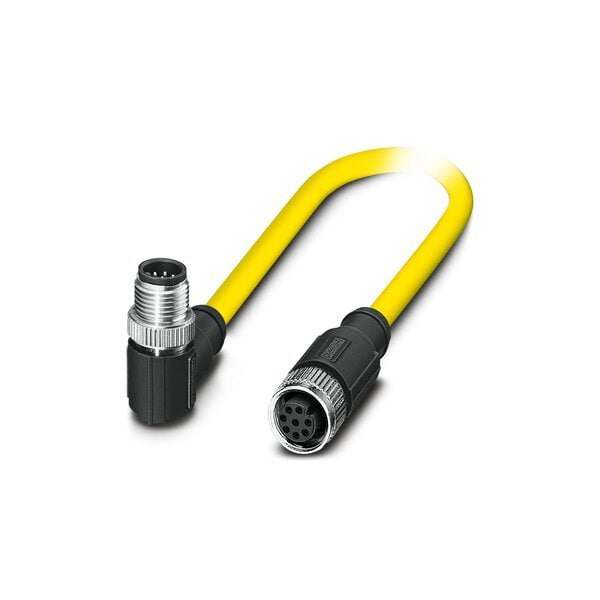 Sensor/actuator cable 8-position PVC yellow shielded Plug angled M12 coding: A on Socket straight M12 coding: A cable length: 0.5 m