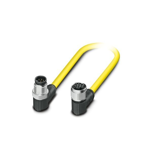 Sensor/actuator cable 8-position PVC yellow Plug angled M12 coding: A on Socket angled M12 coding: A cable length: 1.5 m