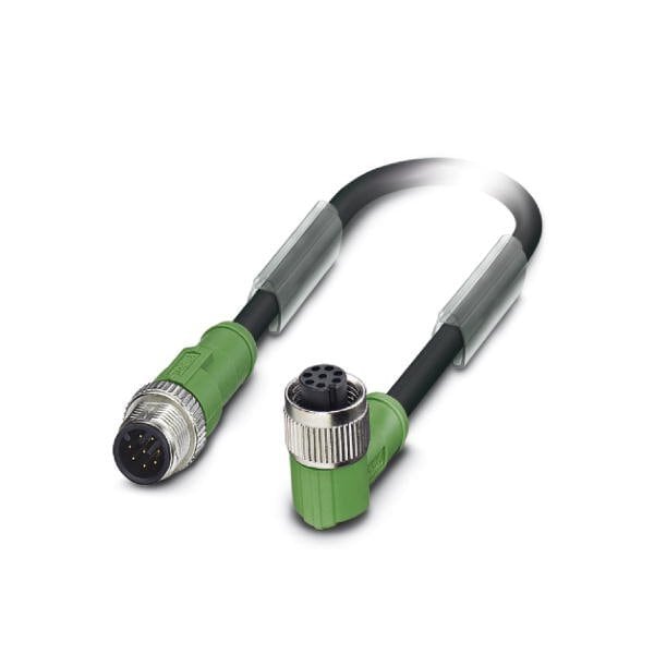 Sensor/actuator cable 8-position PUR halogen-free black-gray RAL 7021 Plug straight M12 coding: A on Socket angled M12 coding: A cable length: 1.5 m