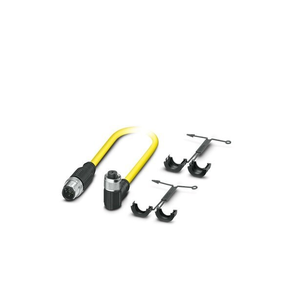 Sensor/actuator cable 4-position PVC yellow shielded Plug straight M12 coding: A on Socket angled M12 coding: A cable length: 1.5 m