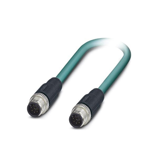 Assembled Ethernet cable shielded 4-pair 26 AWG stranded 7-wire RAL 5021 water blue M12 plug to M12 plug line length: 15 m