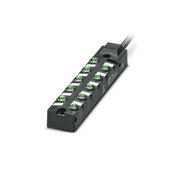Sensor/actuator box application: Standard connection method: M8 socket Metal number of slots: 10 number of positions: 3 coding: A - standard slot assignment: single status display: yes pnp; master cable connection: Fixed connection 180° PUR/PVC cable lengt