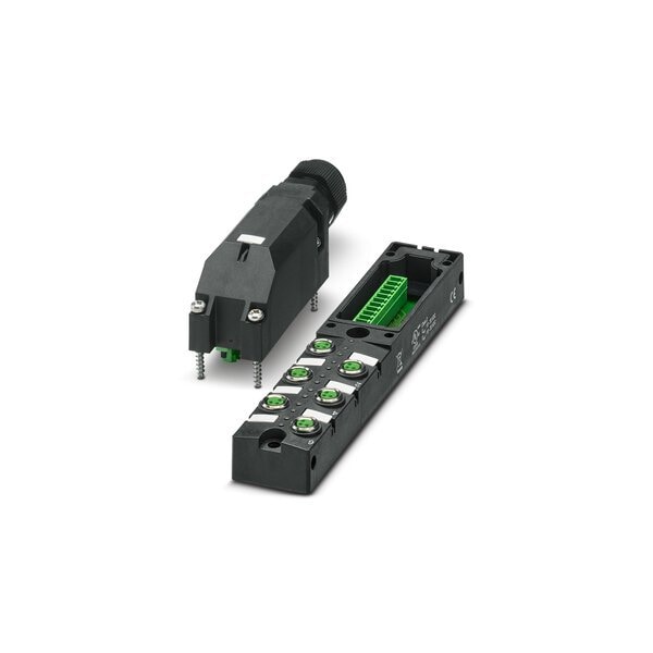 Sensor/actuator box application: Standard connection method: M8 socket Metal number of slots: 6 number of positions: 3 coding: A - standard slot assignment: single status display: yes pnp; master cable connection: Plug-in push-in spring-cage connection 180°