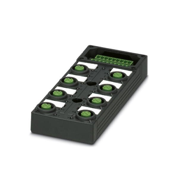 Sensor/actuator box header application: Standard connection method: M12-SPEEDCON-socket Plastic number of slots: 8 number of positions: 5 coding: A - standard slot assignment: Double status display: yes pnp; master cable connection: Pluggable screw connection shiel
