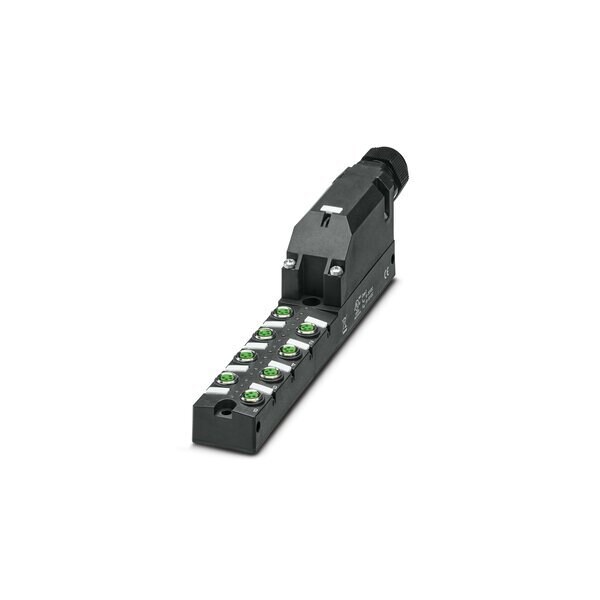Sensor/actuator box application: Standard connection method: M8 socket Metal number of slots: 8 number of positions: 4 coding: A - standard slot assignment: Double status display: yes pnp; master cable connection: Plug-in push-in spring-cage connection 180°