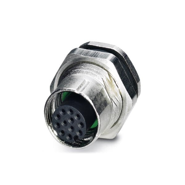 Sensor/actuator flush-type connector socket 12-pos. M12 SPEEDCON A-coded rear/screw mounting with Pg9 thread with straight solder pins