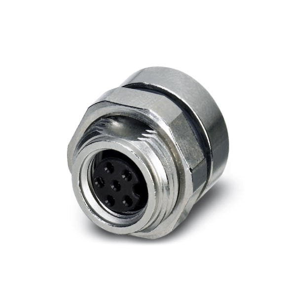 Sensor/actuator flush-type connector socket 6-pos. M8 rear/screw mounting with M12 thread with straight solder connection