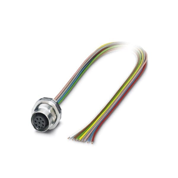 Sensor/Actuator flush-type socket 8-pos. M12 A-coded rear/screw mounting with Pg9 thread with 0.5 m TPE litz wire 8 x 0.25 mm on high-grade steel version