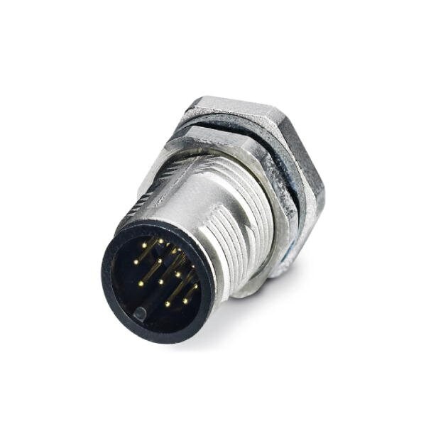 Sensor/actuator flush-type connector plug 12-pos. M12 SPEEDCON A-coded rear/screw mounting with M12 thread with straight solder pins