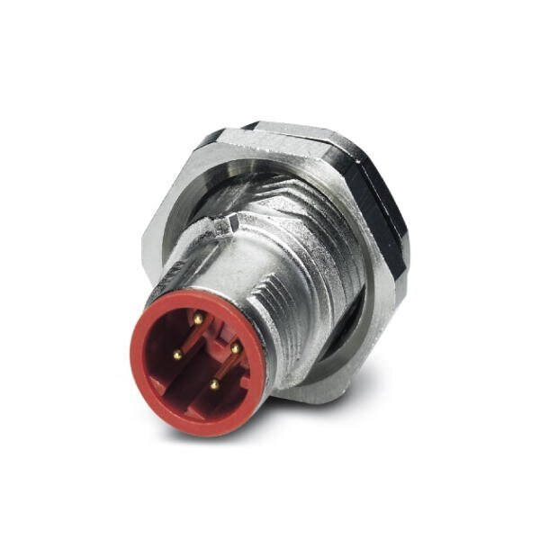 Sensor/actuator flush-type plug 4-pos. M12 SPEEDCON D-coded with red contact carrier rear/screw mounting with M16 thread with straight solder connection