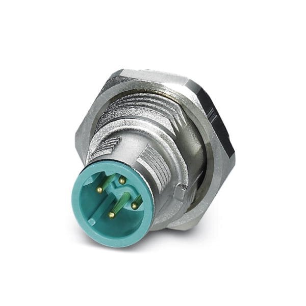 Bus system flush-type plug with water blue contact carrier 4-pos. M12 SPEEDCON shielded D-coded rear/screw mounting with M16 thread with straight solder connection