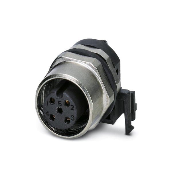 Sensor/actuator flush-type connector socket 4-pos. M12 SPEEDCON A-coded rear/screw mounting with M12 thread with polarity protection with angled solder connection