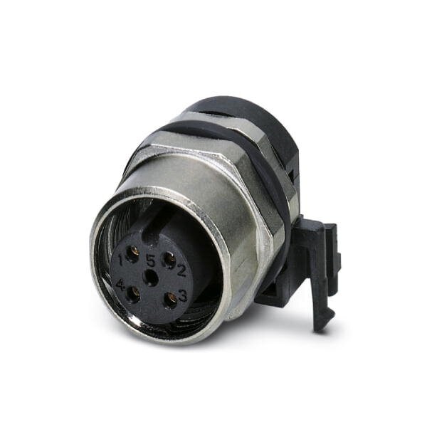 Sensor/actuator flush-type connector socket 4-pos. M12 SPEEDCON A-coded shielded rear/screw mounting with M12 thread with polarity protection with angled solder connection