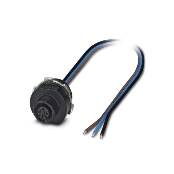 Panel feed-through 3-position/PVC Socket straight M12 A-coded on free cable end Front mounting with 1/2 inch-14 NPT mounting thread Individual wires cable length: 1 m 0.34 mm PVC litz wire