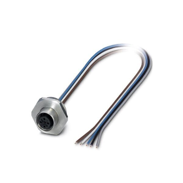 Sensor/actuator flush-type socket 4-pos. M12 A-coded front/screw mounting with M20 x 1.5 thread with 0.5 m TPE litz wire 5 x 0.34 mm stainless steel version