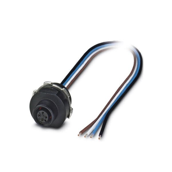 Panel feed-through 4-position/PVC Socket straight M12 A-coded on free cable end Front mounting with 1/2 inch-14 NPT mounting thread Individual wires cable length: 1 m 0.34 mm PVC litz wire