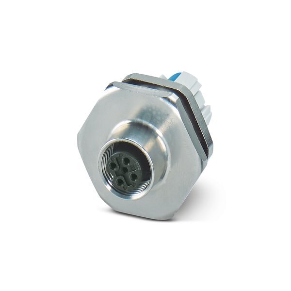 Panel feed-through Universal 4-position unshielded Socket straight M12 Coding: A Front mounting M20 x 1 5 Push-lock connection knurl material: Nickel-plated brass