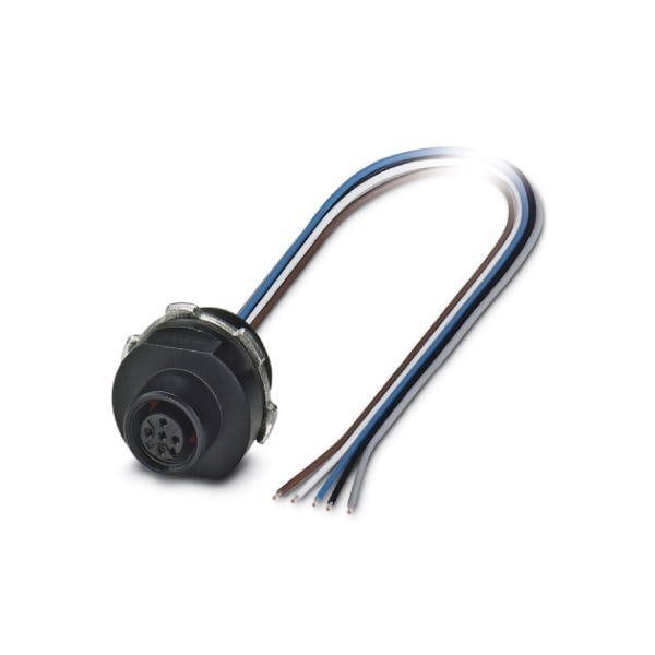 Panel feed-through 5-position/PVC Socket straight M12 A-coded on free cable end Front mounting with 1/2 inch-14 NPT mounting thread Individual wires cable length: 1 m 0.34 mm PVC litz wire