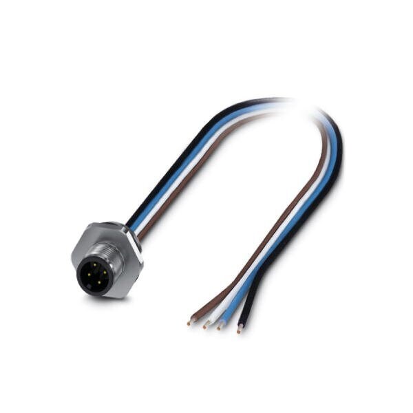 Flush-type connector Universal 5-position PlugLink:M12 A-coded Front mounting M16 x 1.5 Individual wires Cable length: 0.5 m