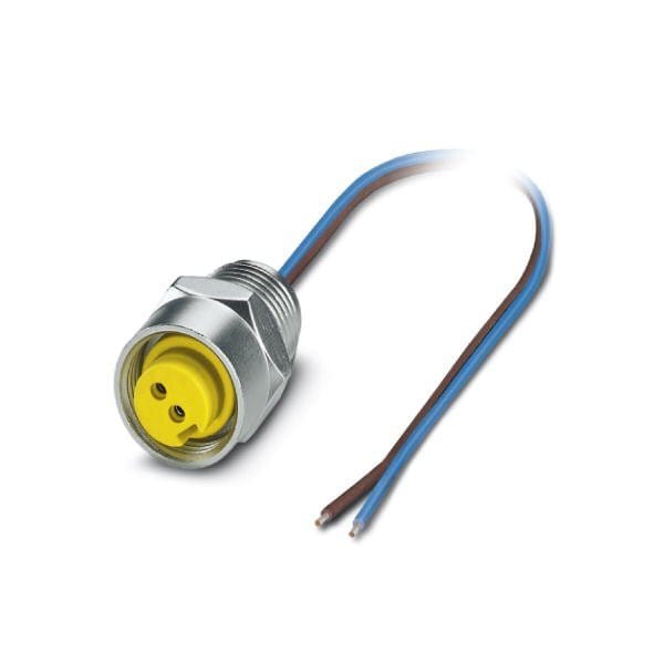 Flush-type connector 2-position Socket straight 7/8-16UNF on free cable end Front mounting with 1/2 inch-14 NPT mounting thread Individual wires cable length: 1 m 0.75 mm PVC litz wire