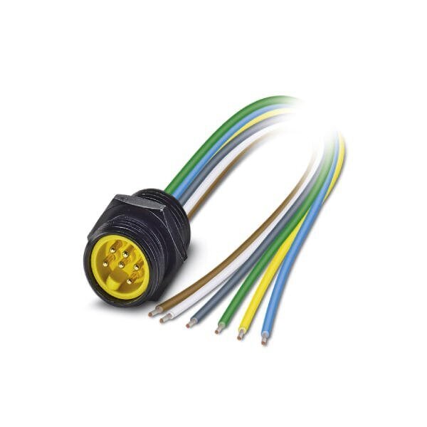 Flush-type connector 6-position Plug straight 7/8-16UNF on free cable end Front mounting with 1/2 inch-14 NPT mounting thread Individual wires cable length: 1 m 0.75 mm PVC litz wire