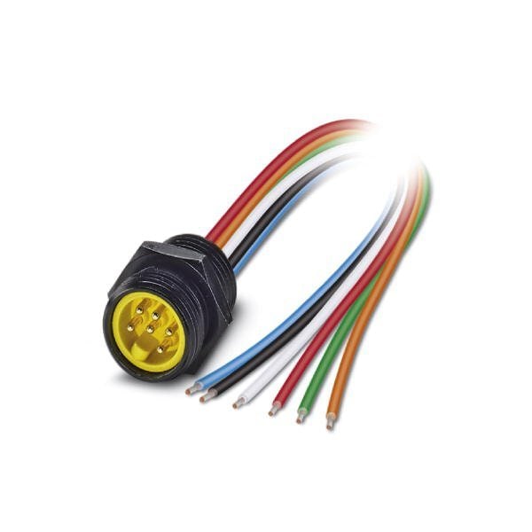 Flush-type connector 6-position Plug straight 7/8-16UNF on free cable end Front mounting with 1/2 inch-14 NPT mounting thread Individual wires cable length: 1 m 1.50 mm PVC litz wire
