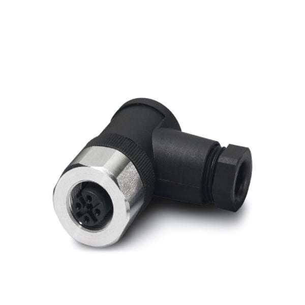 Connector 5-position Socket angled M12 Coding: A Screw connection knurl material: Stainless steel 1.4404 cable gland Pg7 external cable diameter 4 mm ... 6 mm