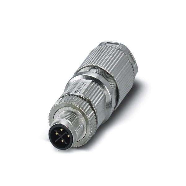 Power connector Power 4-position shielded Plug straight M12 Coding: S Crimp connection knurl material: Zinc die-cast nickel-plated external cable diameter 6.5 mm ... 11 mm without crimp contacts Contact 4 leading