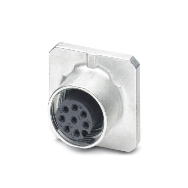 Sensor/actuator flush-type connector 8-pos. socket M12 A-coded front/square flange mounting wave soldering