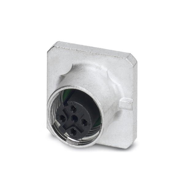 Sensor/actuator flush-type connector 4-pos. socket M12 D-coded front/square flange mounting wave soldering