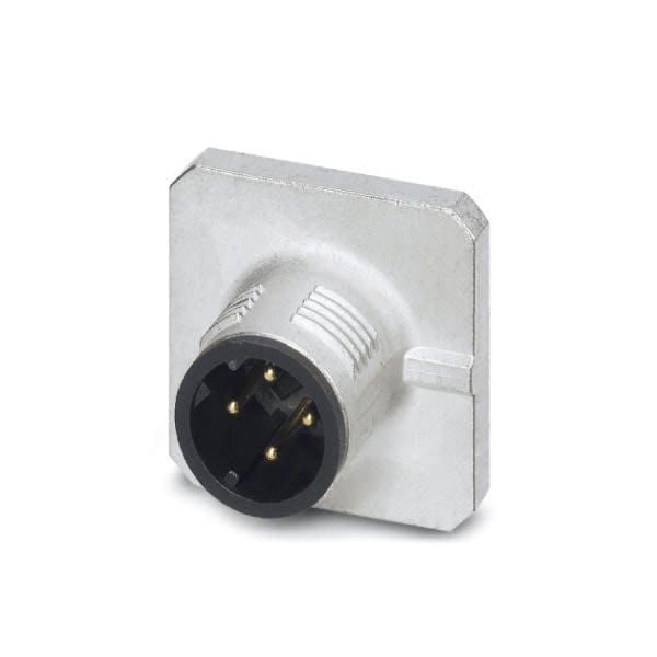 Sensor/actuator flush-type plug 4-pos. socket M12 D-coded front/square flange mounting wave soldering