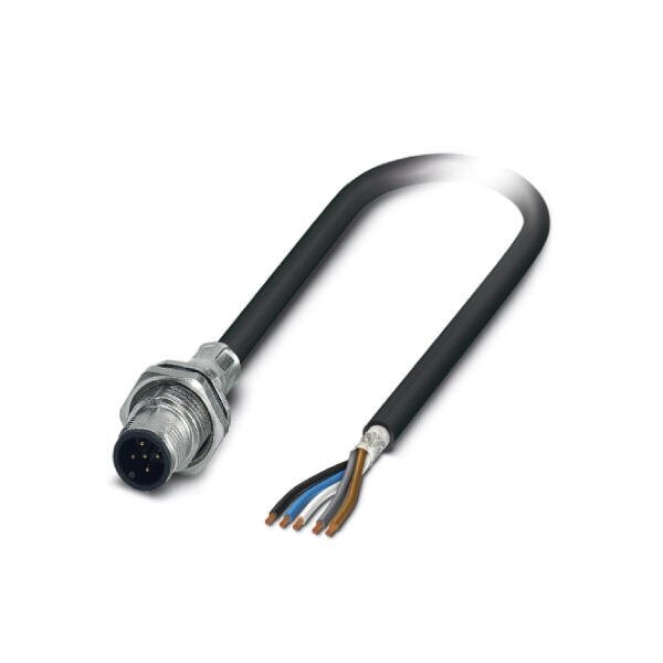 Flush-type plug shielded 5-pos. M12 A-coded rear/screw mounting with M16 thread with 1 m cable 5 x 0.34 mm