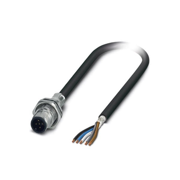 Flush-type plug shielded 5-pos. M12 A-coded rear/screw mounting with M16 thread with 2 m cable 5 x 0.34 mm