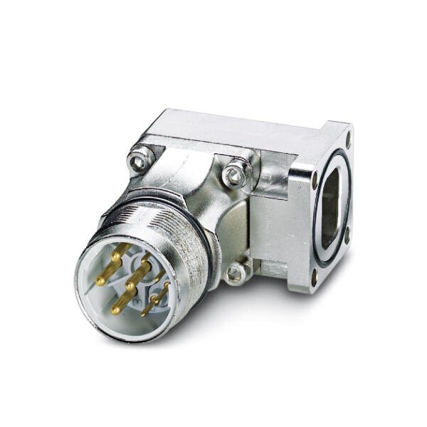 Device connector front mounting Angled fixed for higher loads Screw locking M23 number of positions: 5+PE type of contact: Pin Axial O-ring 4x 3.2 shielded: yes flange dimensions: 26 mm x 26 mm degree of protection: IP67 number of positions: 6 connection met
