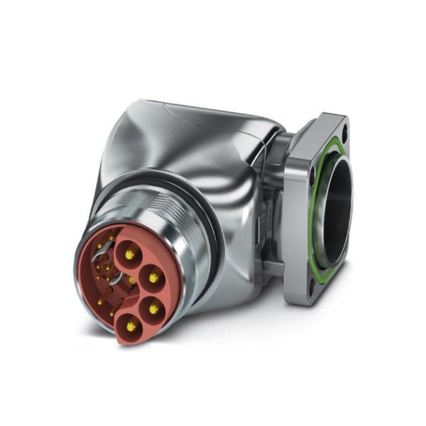 Device connector front mounting SH angled rotatable for standard and SPEEDCON interlock M23 No. of pos.: 4+4+4+PE / 3+N+PE type of contact: Pin Crimp connection Axial O-ring 4x 3.2 flange dimensions: 28 mm x 28 mm coding:N