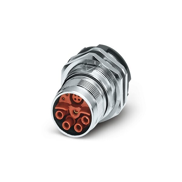 Device connector for rear wall straight shielded: yes for standard and SPEEDCON interlock M23 No. of pos.: 8+4+PE type of contact: Socket Crimp connection Flat gasket Central fastening M26 x 1 Panel thickness min.: 1.5 mm Panel thickness max.: 5 mm