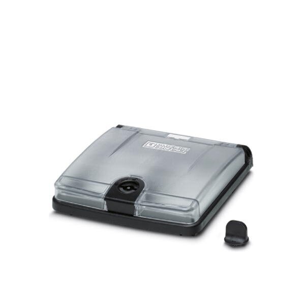 Mounting frame for two front plates/sockets plastic frame: black plastic cover: transparent closed with 3 mm two-way key bit and rotary knob included.
