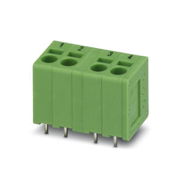 PCB terminal block nominal current: 23 A nominal cross section: 2.5 mm Number of potentials: 4 Number of rows: 1 Number of positions per row: 4 product range: SPT 2 5/..-V-EX PROFINET pitch: 5 mm connection method: Push-in spring connection mounting: Wave soldering