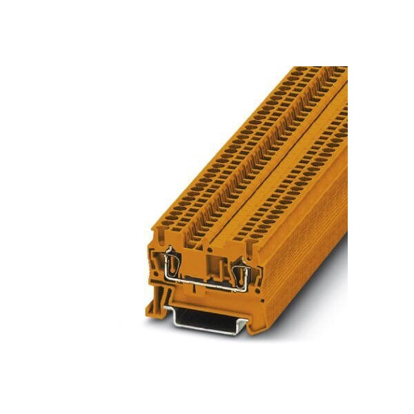 Feed-through terminal block nom. voltage: 500 V nominal current: 17.5 A connection method: Spring-cage connection number of connections: 2 cross section: 0.08 mm - 1.5 mm AWG: 28 - 16 width: 4.2 mm color: orange mounting type: NS 35/7 5 NS 35/15