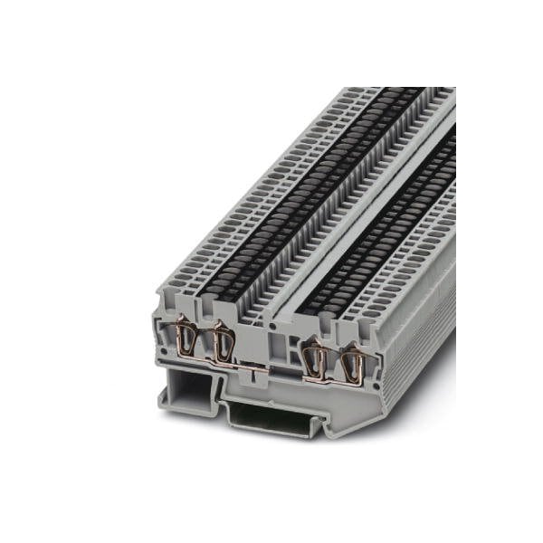 Feed-through terminal block nom. voltage: 500 V nominal current: 17.5 A connection method: Spring-cage connection number of connections: 4 cross section: 0.08 mm - 1.5 mm AWG: 28 - 16 width: 4.2 mm color: gray mounting type: NS 35/7 5 NS 35/15