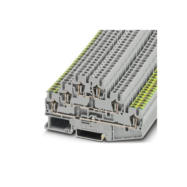 Spring cage ground terminal block nom. voltage: 500 V nominal current: 22 A connection method: Spring-cage connection number of connections: 6 cross section: 0.08 mm - 4 mm AWG: 28 - 12 width: 5.2 mm color: gray mounting type: NS 35/7 5 NS 35/15