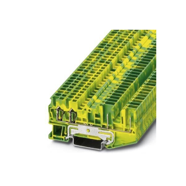 Spring cage ground terminal block connection method: Spring-cage/plug-in connection number of connections: 4 cross section: 0.08 mm - 4 mm AWG: 28 - 12 width: 5.2 mm color: green-yellow mounting type: NS 35/7 5 NS 35/15