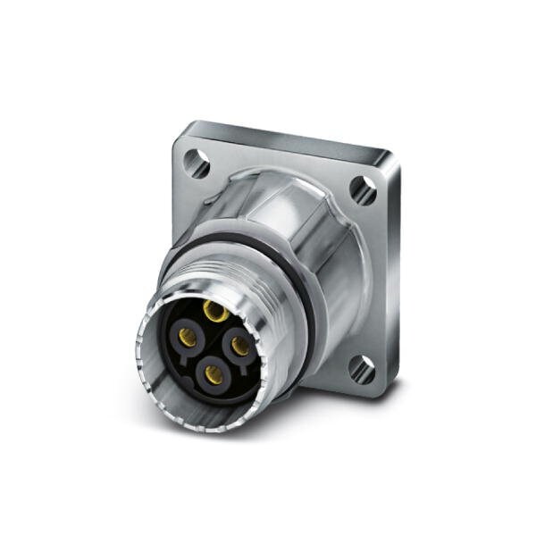 Device connector front mounting straight for standard and SPEEDCON interlock M17 number of positions: 3+PE type of contact: Socket Axial O-ring 4x 3.2 shielded: yes flange dimensions: 25.75 mm x 25.75 mm degree of protection: IP67 number of positions: 4 conn