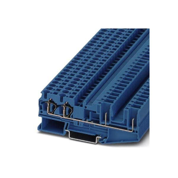 Feed-through terminal block nom. voltage: 800 V nominal current: 32 A connection method: Spring-cage/plug-in connection number of connections: 4 cross section: 0.08 mm - 6 mm AWG: 28 - 10 width: 6.2 mm color: blue mounting type: NS 35/7 5 NS 35/15