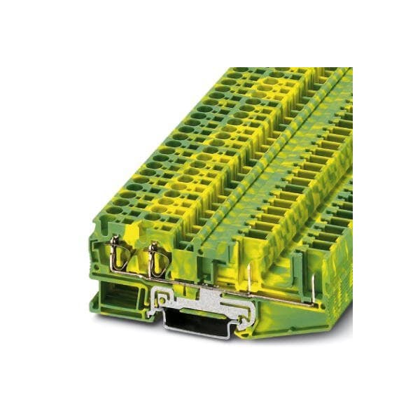 Spring cage ground terminal block connection method: Spring-cage/plug-in connection number of connections: 4 cross section: 0.08 mm - 6 mm AWG: 28 - 10 width: 6.2 mm color: green-yellow mounting type: NS 35/7 5 NS 35/15