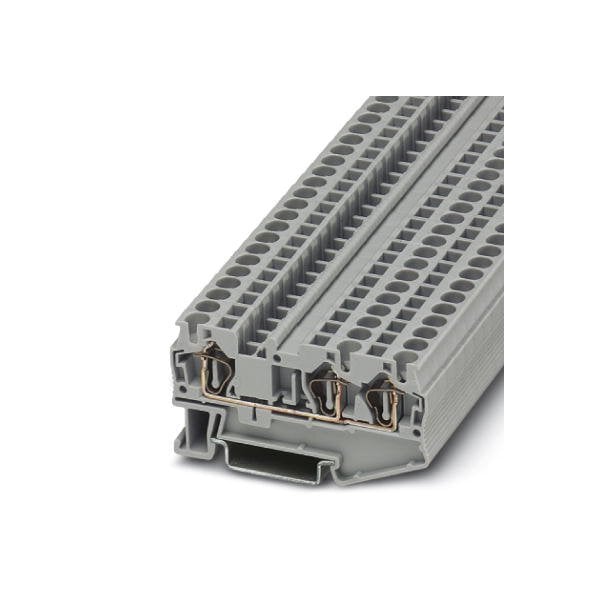 Feed-through terminal block nom. voltage: 800 V nominal current: 32 A connection method: Spring-cage connection number of connections: 3 cross section: 0.08 mm - 6 mm AWG: 28 - 10 width: 6.2 mm color: gray mounting type: NS 35/7 5 NS 35/15