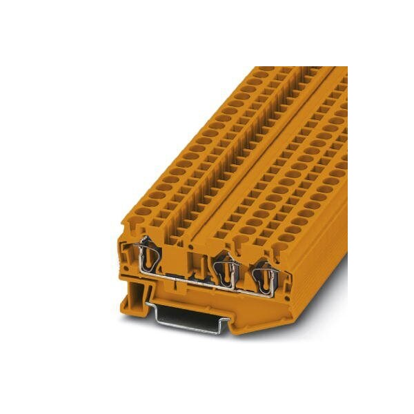 Feed-through terminal block nom. voltage: 800 V nominal current: 32 A connection method: Spring-cage connection number of connections: 3 cross section: 0.08 mm - 6 mm AWG: 28 - 10 width: 6.2 mm color: orange mounting type: NS 35/7 5 NS 35/15